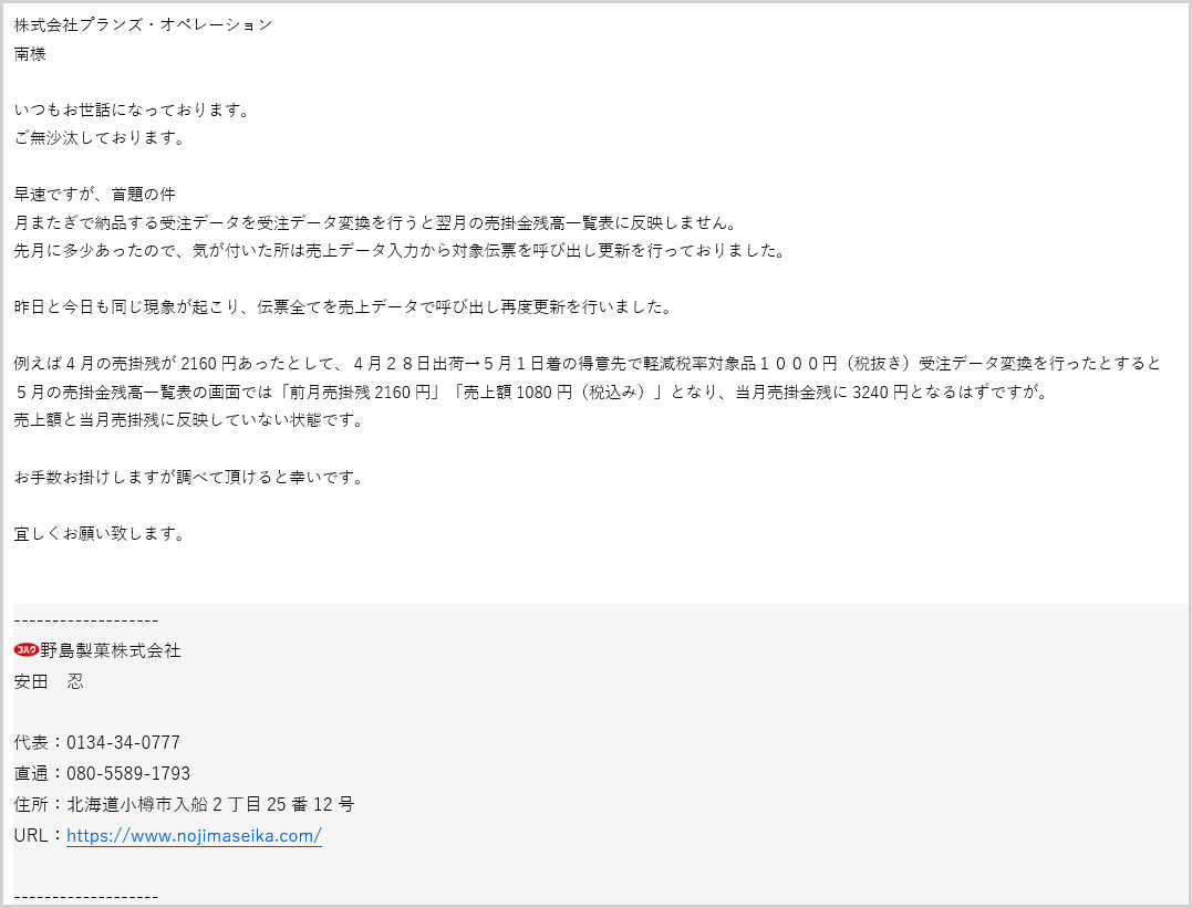 下記に野島製菓㈱安田氏からのメールを掲載した。